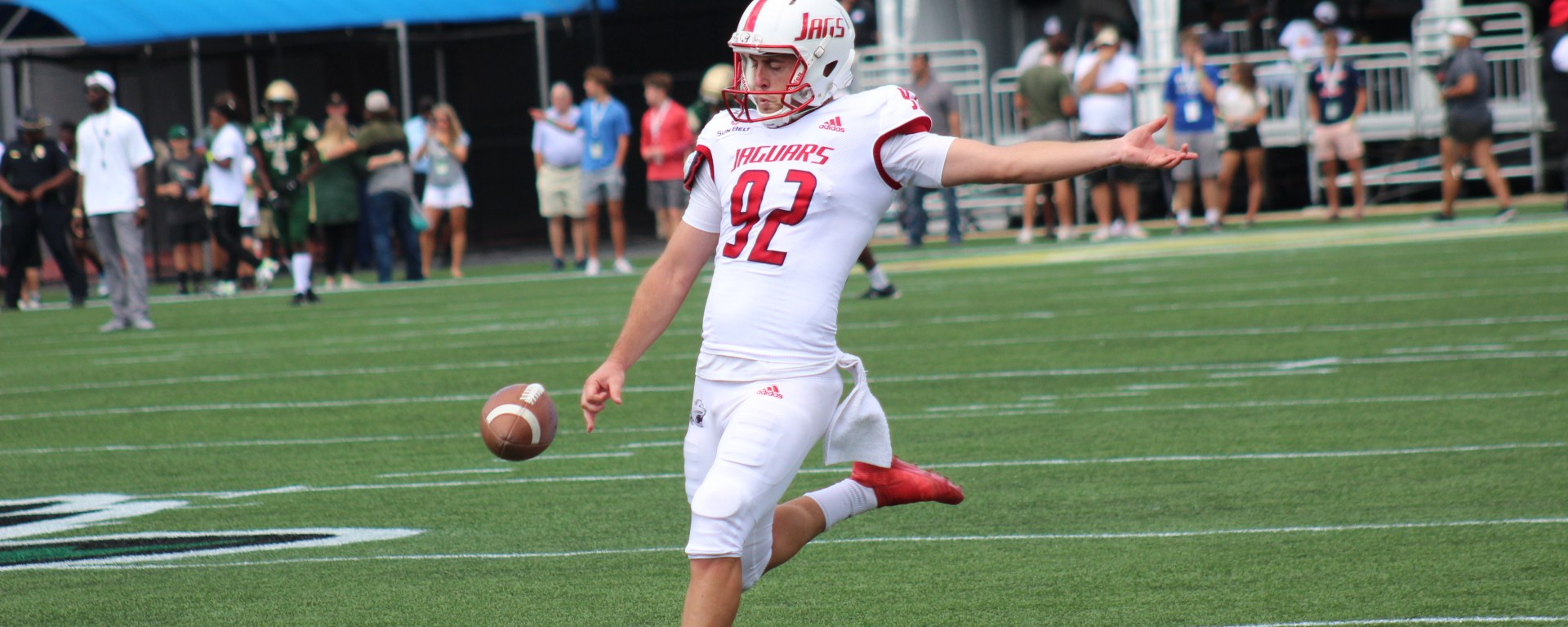 Typical, these punts are shorter than the traditional style of punts, but Brooks has put some distance with his punts. In the game against UAB last weekend, Brooks punted the ball six times for a total of 270 yards thus averaging 45-yards per punt. His longest punt went for 55-yards. Brooks will continue to be an impactful player for the Jaguars this season as they start Sun Belt Conference play this Saturday at the Louisiana-Monroe Warhawks.