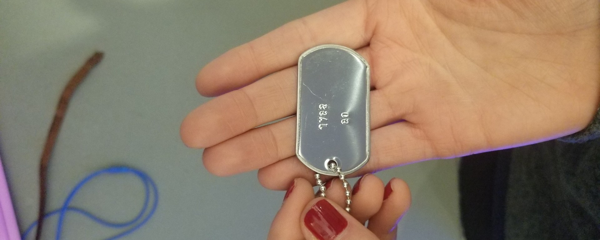 They handed the messages off to a worker who typed it into a machine. The machine then pressed the message into the thin metal of the dog tags, which ranged from four-inch keychains to thirty-six-inch necklaces. Almost instantly, students walked off with their own custom dog tag in hand.