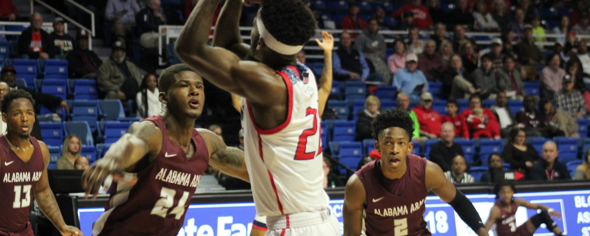 Josh Ajayi wasted no time scoring 13 of the team’s first 15 points in less than six minutes after a tip-off. He was also 4 for 4 from the free-throw line. Ajayi would finish the game with a team-leading and game-high 24 points.