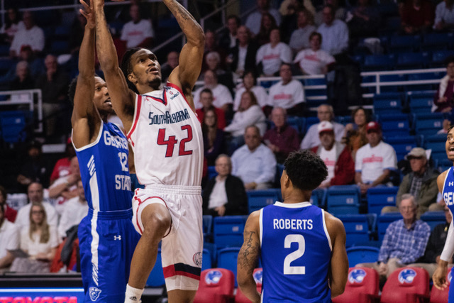 At the end of the first half, there were seven total lead changes between the Jaguars and the Panthers. The Jaguars were down 37-33 due to the 10 turnovers they encountered and their missed free-throws as they were 8-of-14 from the free-throw line. They were also allowing too many open shots from the three-point arc for Georgia State to capitalize on. Forward Josh Ajayi led the team with 11 points and six rebounds but also was blocked five times against the Panthers’ paint presence. Guard John Pettway scored seven points (2-for-5 on field goals) and guard Chad Lott scored nine points (4-for-8 on field goals).