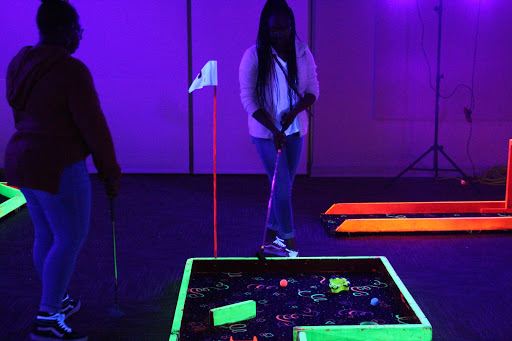 Last Thursday evening, Jaguar Productions hosted Jags After Dark in the student center. The event boasted a glow-in-the dark mini-golf course, roller rink, oxygen bar and a photo booth. Food and drinks were also served in the ballroom for jags to enjoy.