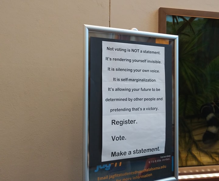 Students can still register to vote via paper forms which are located next to the second-floor entrance at the Marx Library until the Friday deadline. Online registration forms are available at www.alabamavotes.gov.