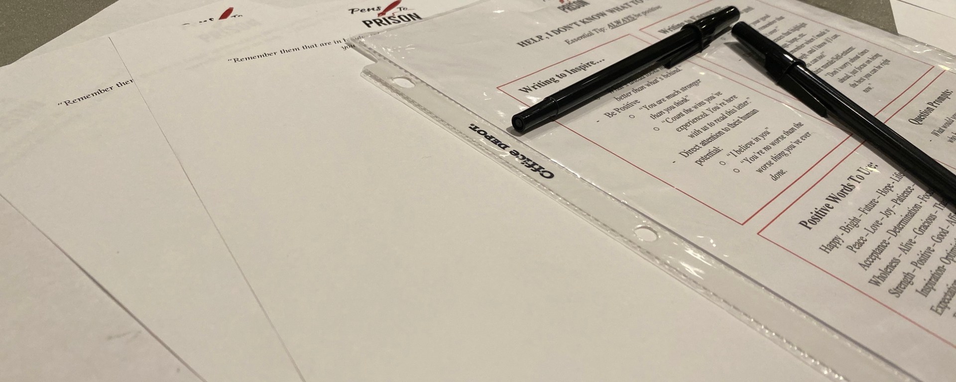 Pens to Prison is a Christian-based ministry led by Jennifer “Brianne” Towne. The ministry writes letters of life, hope, salvation, and prayers to inmates. The writing community of Pens to Prison is set around the premise of serving via letters and printed out monthly Bible study plans.