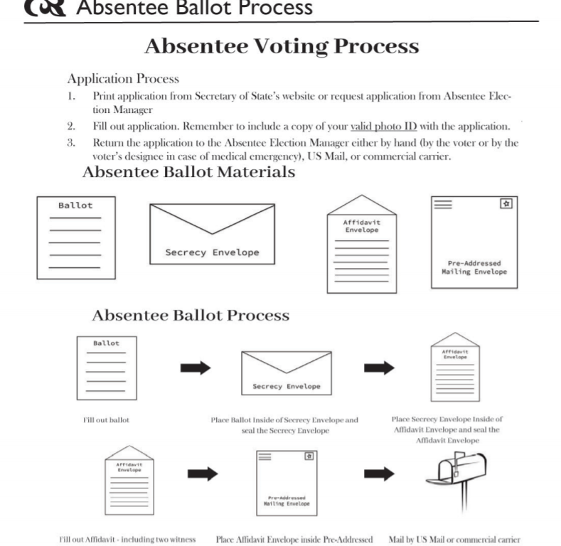 The procedure for completing the absentee ballot according to sos.alabama.gov is as follows. The absentee ballot comes with three envelopes – one plain (the secrecy envelope), one with an affidavit, or oath, printed on the outside and one plain envelope, preaddressed (the outer envelope). Once the voter casts the ballot, the procedure is as follows: