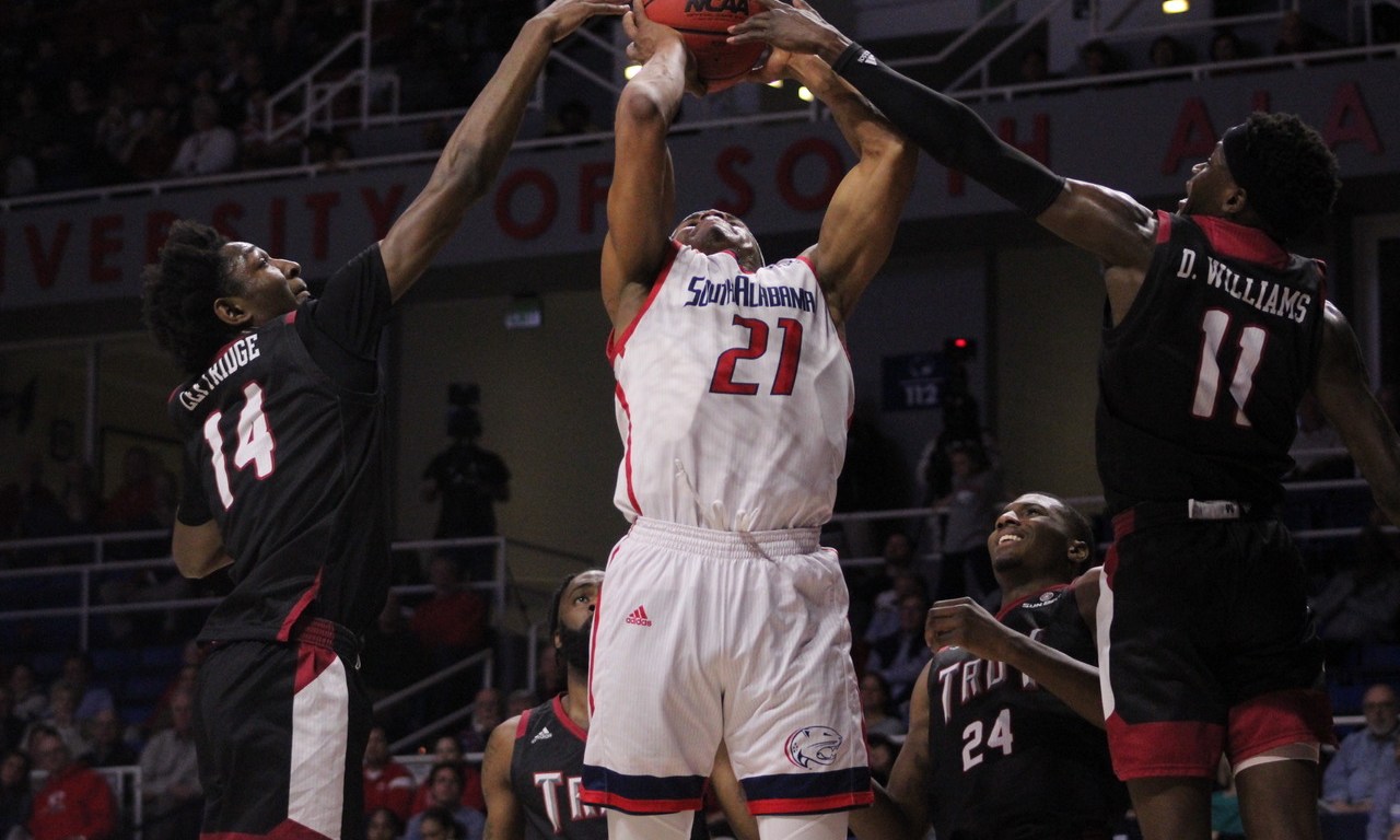 On Feb. 11, at the Mitchell Center, the South Alabama Jaguars men’s basketball team faced the Troy Trojans. The Jaguars were looking to continue their five win streak against the Trojans.