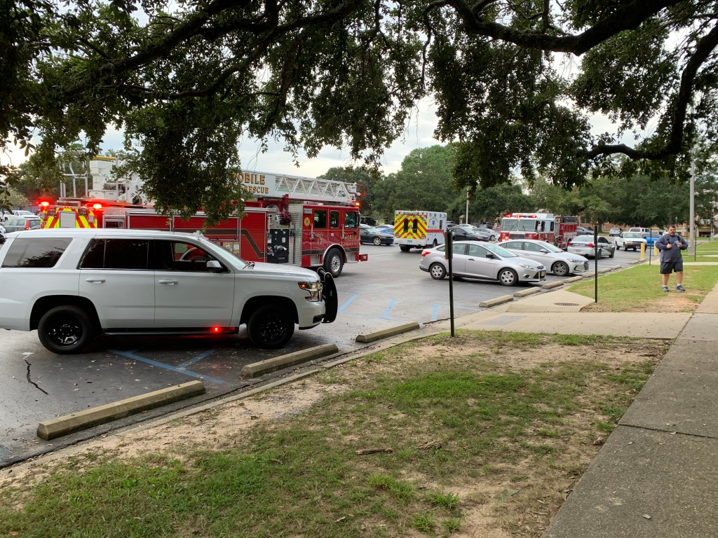 Firefighters and ambulances with flashing lights were visible in front of Shelby Hall on South Alabama’s campus after being called to for a potential gas leak Sept. 30.