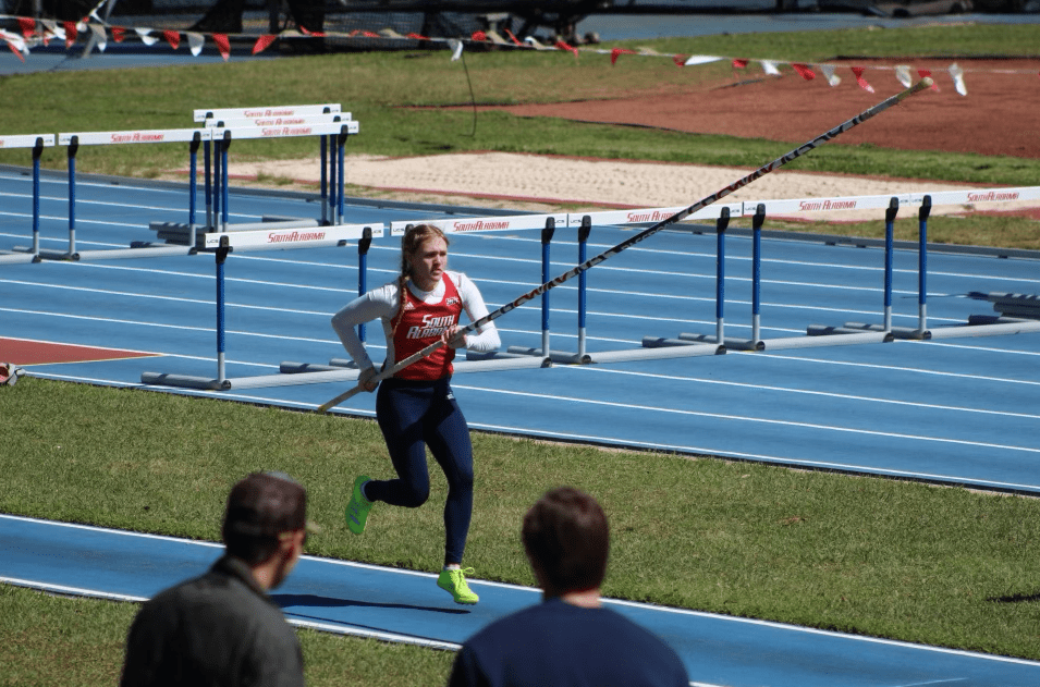 Our Lady Jags swept the top five spots in the pole vault with Alexis Gratia and Riley Caudill tying for first place with 3.66m marks.
