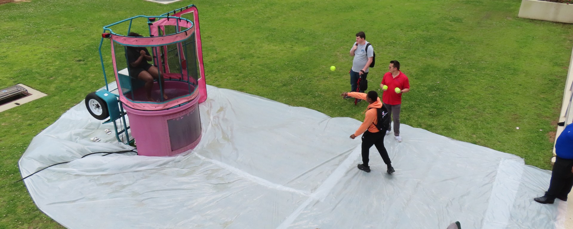 Jackson noted that the philanthropy challenge of this year was in fact a new addition to Giving Day. The Black Student Union (BSU), the Student Government Association (SGA) and Greek Life representatives were dunked to show support for their individual causes while gaining donors in the process.