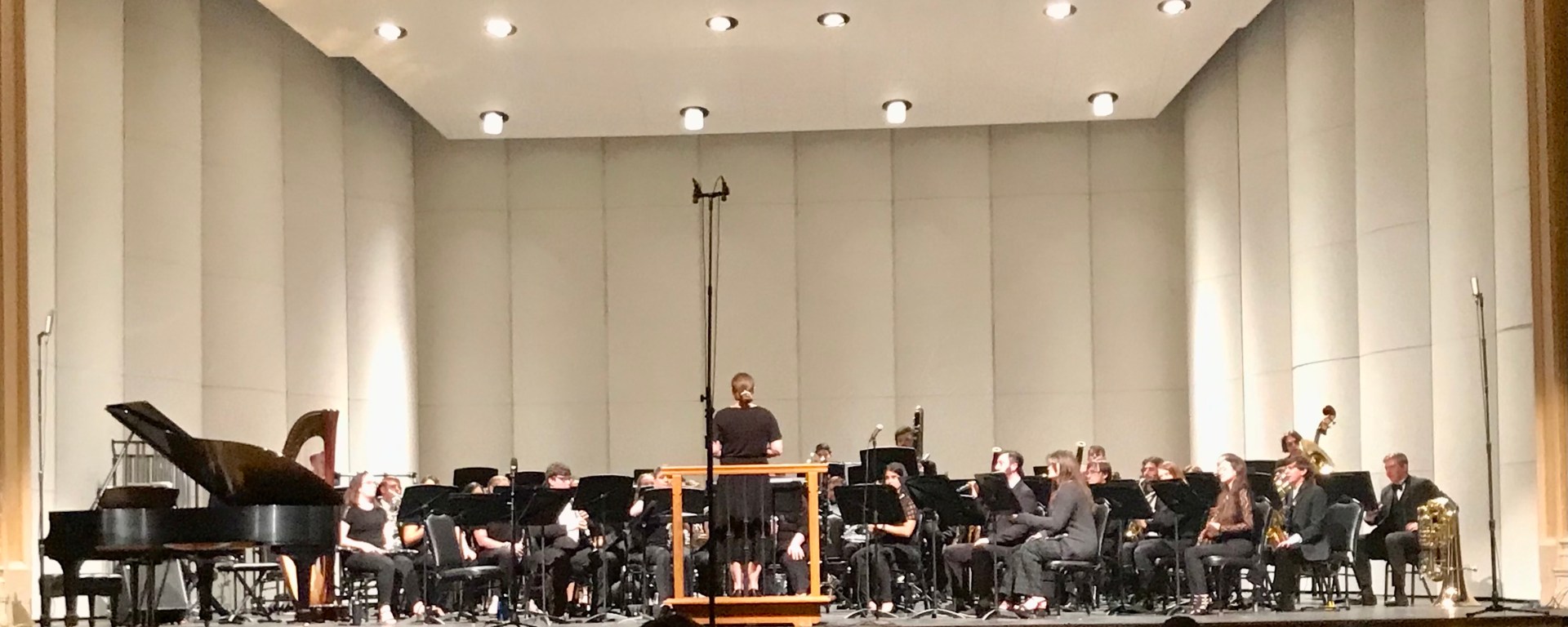 Dr. Greg Gruner was the guest conductor of the night. He served as chair of the department of music at South until his retirement in 2018. He conducted a piece by Sir Malcolm Arnold entitled Peterloo Overture.