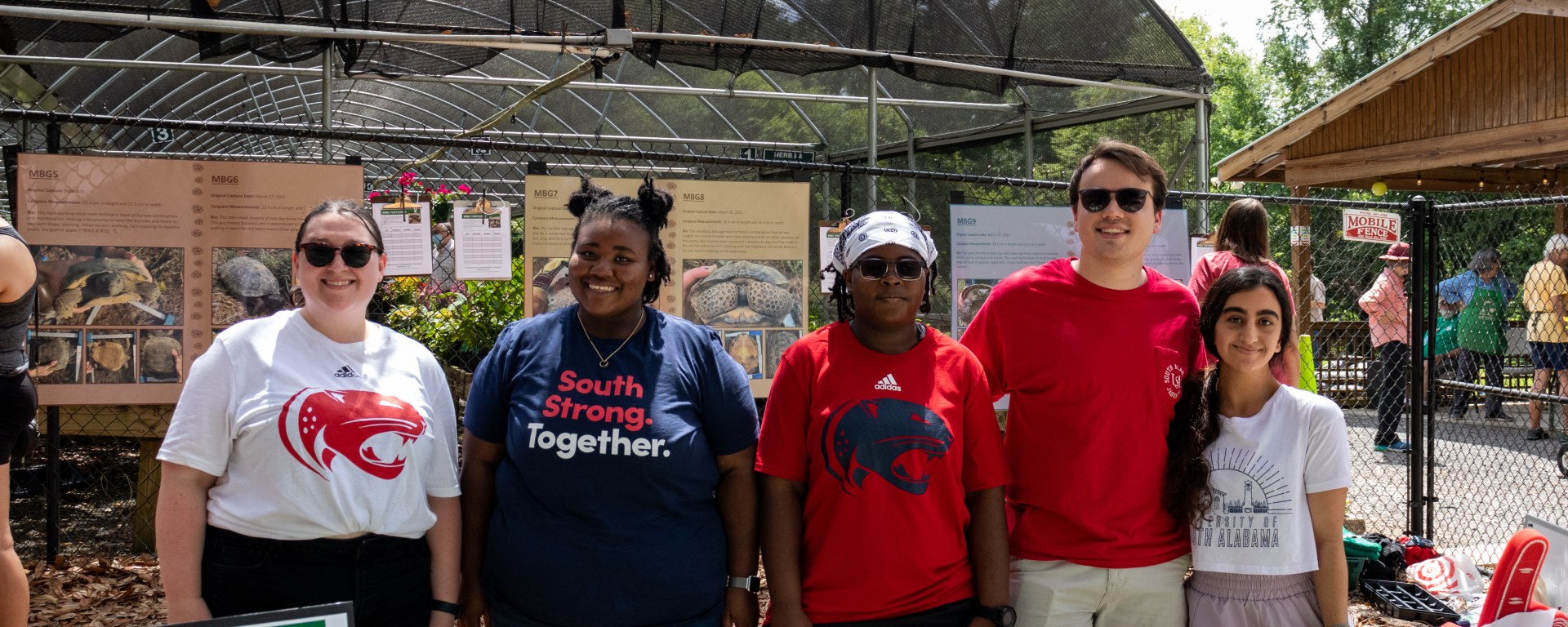 Attendees also got a chance to see the tortoises up close and learn from students and professors at South’s biology department, who have been tracking and researching the longtime Mobile natives. Assistant professors Dr. Adam Chupp and Dr. Jason Strickland led guests through the Pineleaf Forest, located in the gardens, on a tour. Chupp explained how the fundraising auction would help support not only the tortoises but the forest itself.