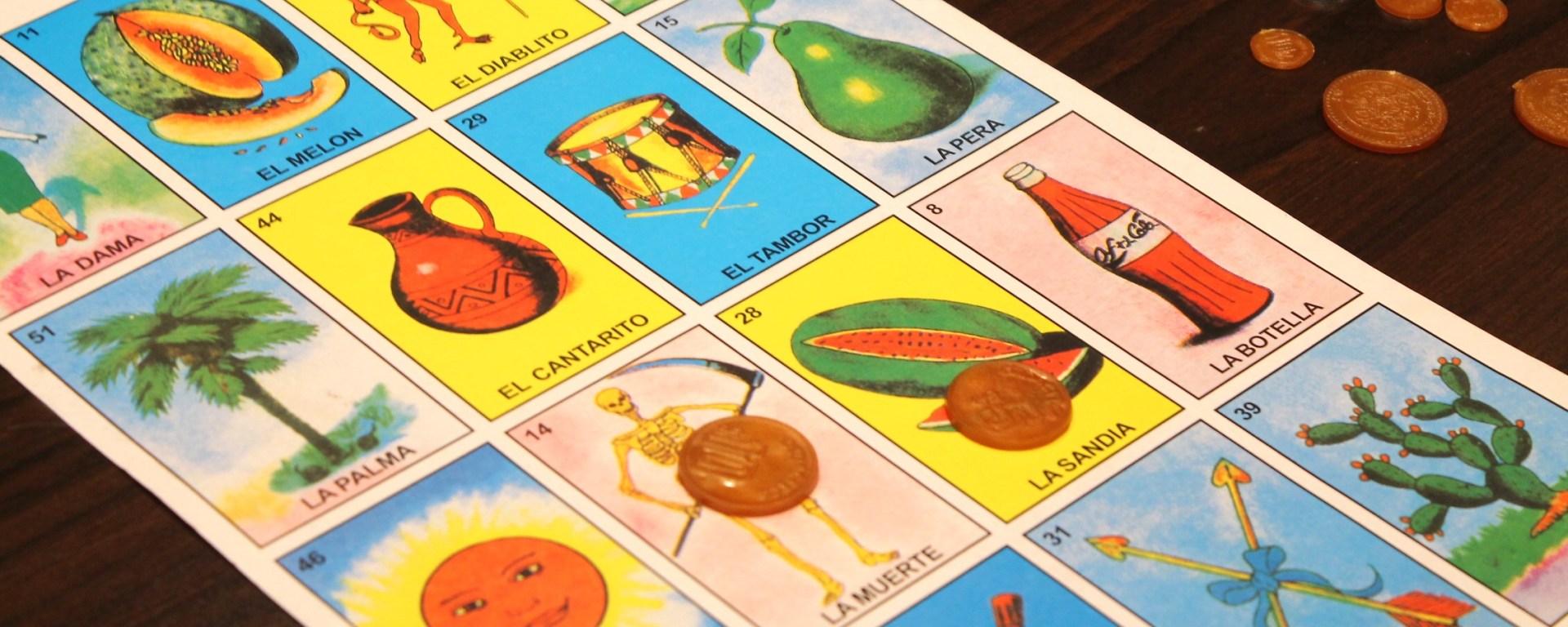 Lotería carries the same concept as the American version of bingo, where you must fill your board with a decided pattern of tokens. The difference is that instead of matching letters and numbers, you match pictures on your Lotería card with colorful images presented by the game host.