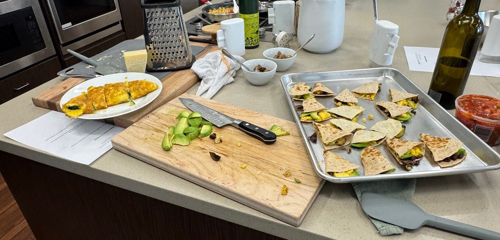 I attended a breakfast cooking class and learned new techniques that helped make cooking an egg omelette a breeze. The class provided the participants all of the necessary ingredients. We learned safe methods for cutting vegetables and cracking eggs without getting eggshells into our recipe.