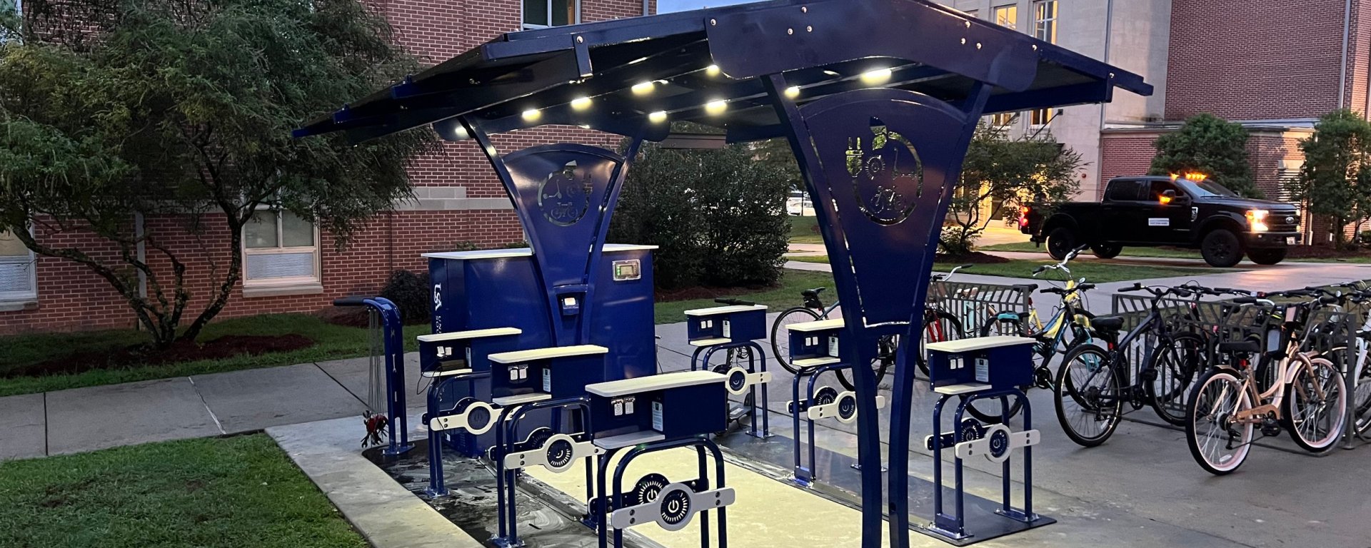Voila! The solar-powered charging stations were born. Not only do they provide a safe spot to juice up your ride, but they also reflect the university’s commitment to sustainability. Sure, the initial cost was a bit higher, but prioritizing student safety and eco-friendly practices is invaluable. The first two stations—strategically located behind Azalea Hall and at the Student Center—have already become campus hotspots, and even more are on the horizon! By fall, you will find new stations popping up in front of Camellia and Stokes Halls.