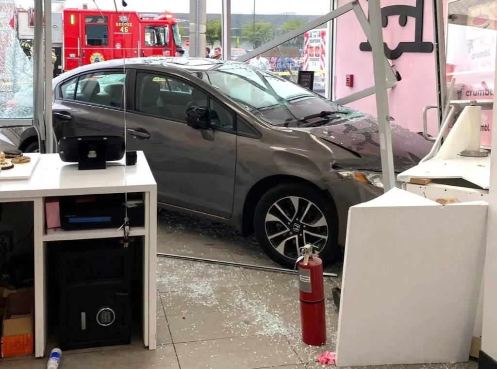 Oddly, just one week prior, on September 24th, the same incident occurred at a Crumbl Cookie store in Newtown, Pennsylvania. The driver of the Honda apparently “lost control” of the car, crashing into the front doors.