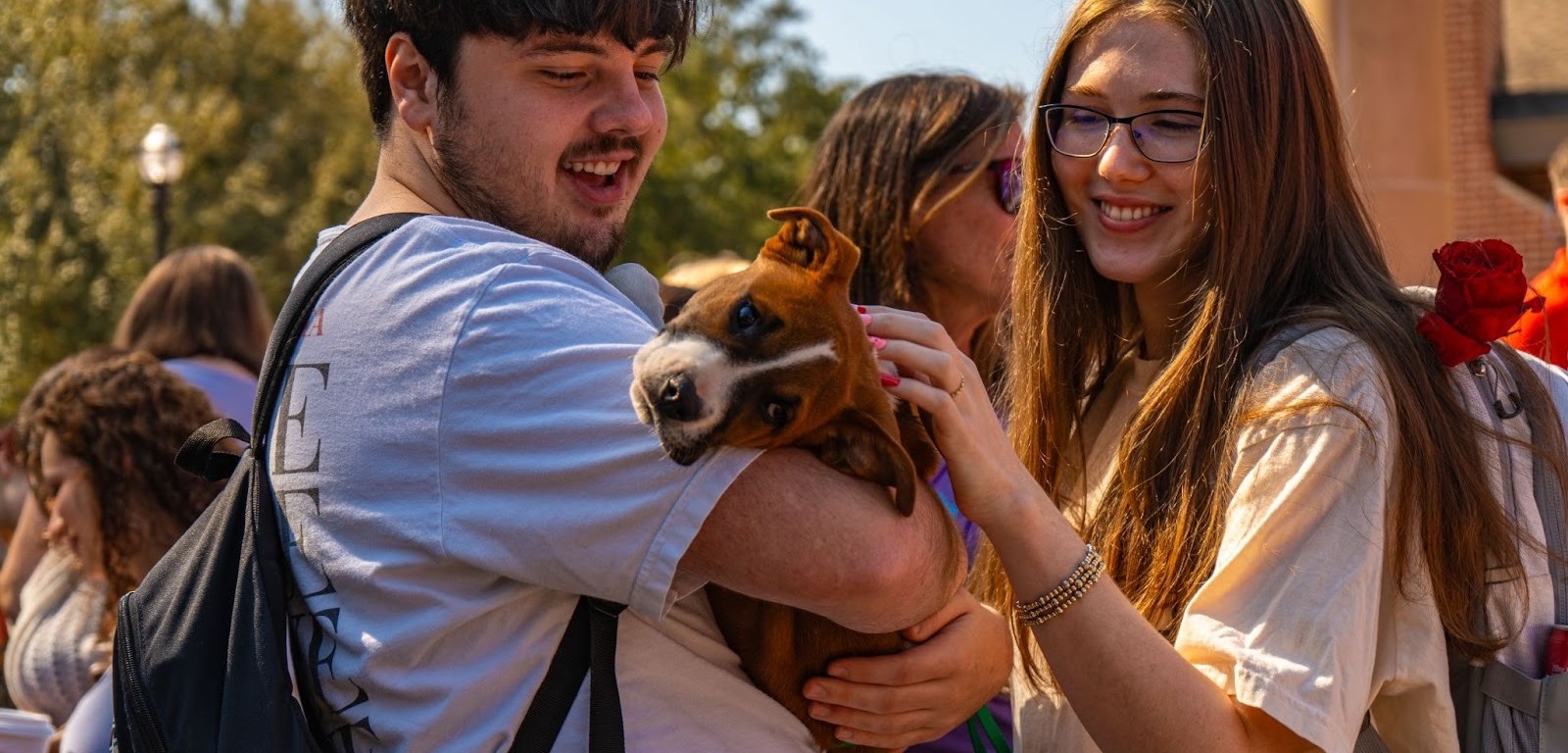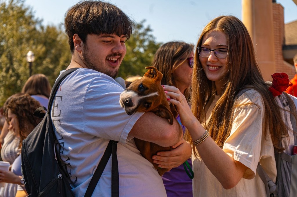 While it’s fun to spend some time with puppies at a campus event and grab a “Kiss a Puppy” button on the way to class, they’re also here in the hopes of being adopted. If you missed this event, don’t worry! These puppies are back on campus throughout the semester, including during Midterms and Finals weeks, for students’ mental health.