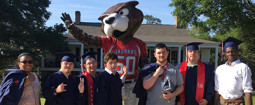 PASSAGE stands for “Preparing All Students Socially and Academically for Gainful Employment,” and that process begins immediately upon enrollment. Students participate in work internships and employment courses every semester, attend inclusive classes with other South students, and take specialized classes that foster growth in their Adult Education Plan goals. PASSAGE USA students also have access to the USA recreation areas. Anyone who is considering application is welcome to shadow a PASSAGE USA student for a day by contacting passageusa@southalabama.edu.